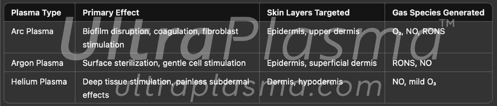 UltraPlasma™ Arc Plasma Mode: Delivers high-intensity ionization, effective for decontamination and fibroblast activation.