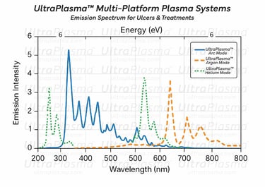 UltraPlasma™ multi-platform plasma systems, through a carefully orchestrated interaction of arc, argon, and helium plasma emissions and reactive gas species, offer a revolutionary approach to chronic ulcer treatment. By addressing the multifaceted impairments in chronic wound beds — including infection control, oxygenation, inflammation modulation, and tissue regeneration — UltraPlasma™ presents an integrated, safe, and highly effective solution.